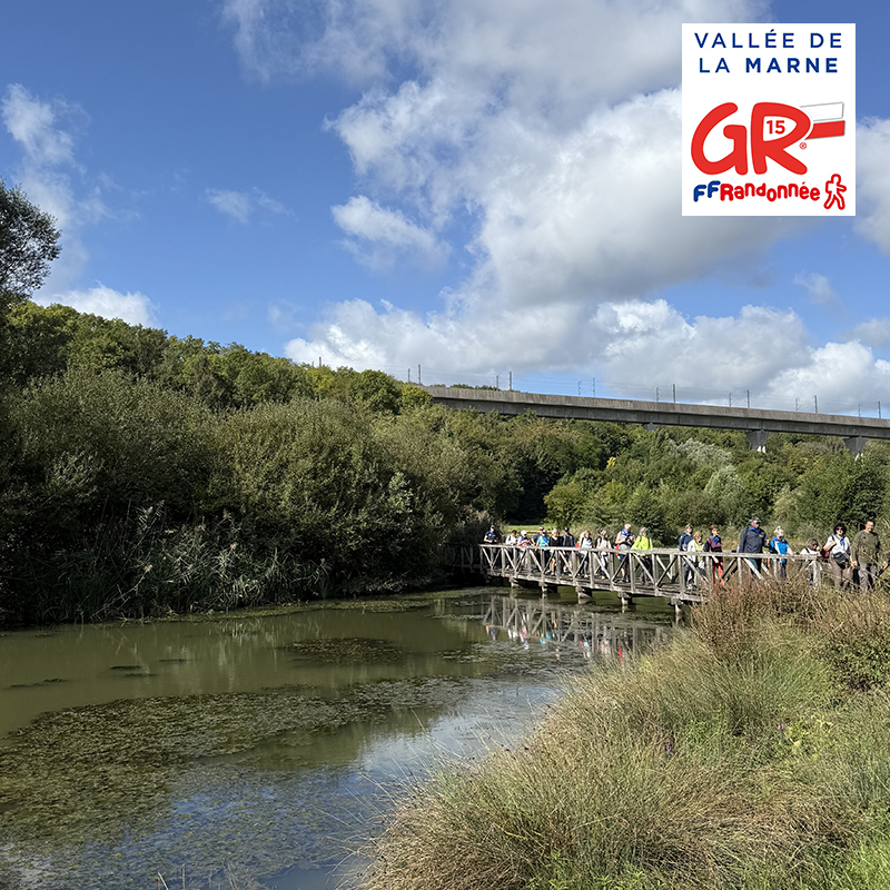 Ce mois de septembre 2025 fut marqué par l'inauguration du GR® 15, la Vallée de la Marne. A cette occasion, au total plus de 800 randonneurs ont pu remonter la Marne à pied de Paris à Château-Thierry, en 10 étapes. Ces 10 étapes étaient encadrées et commentées par des bénévoles de cinq comités départementaux Paris, Val-de-Marne, Seine-Saint-Denis- Seine-et-Marne et Aisne ; et notre Comité Régional Île-de-France de la Randonnée Pédestre. Elles étaient toutes gratuites, ouvertes à tous et accessibles en transports en commun. Entre méandres, bois, forêts, vallées, coteaux, patrimoine historique et culturel... tous les marcheurs se sont accordés à dire que les paysages du GR® 15 sont riches et variés, à découvrir ou à redécouvrir sans modération !